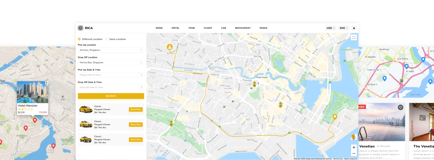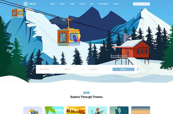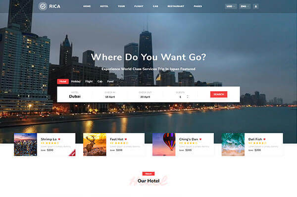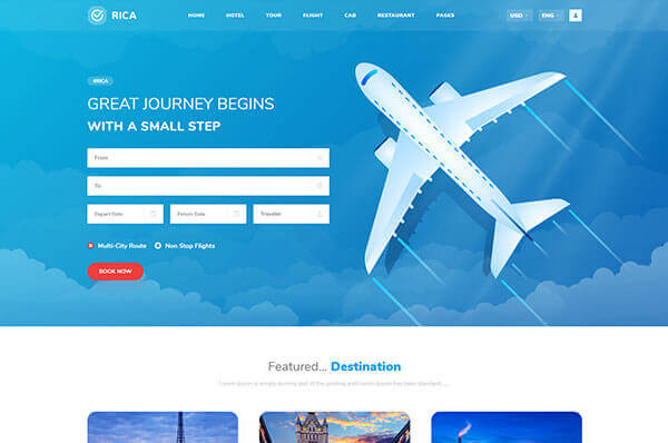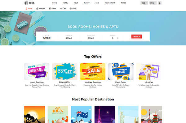 this theme is based on online booking which includes cab booking, hotel booking, holiday or travel booking, flight booking and food order.